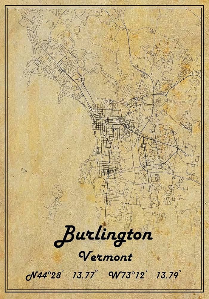 Burlington Vermont USA Vintage Map Poster Burlington Vermont USA
