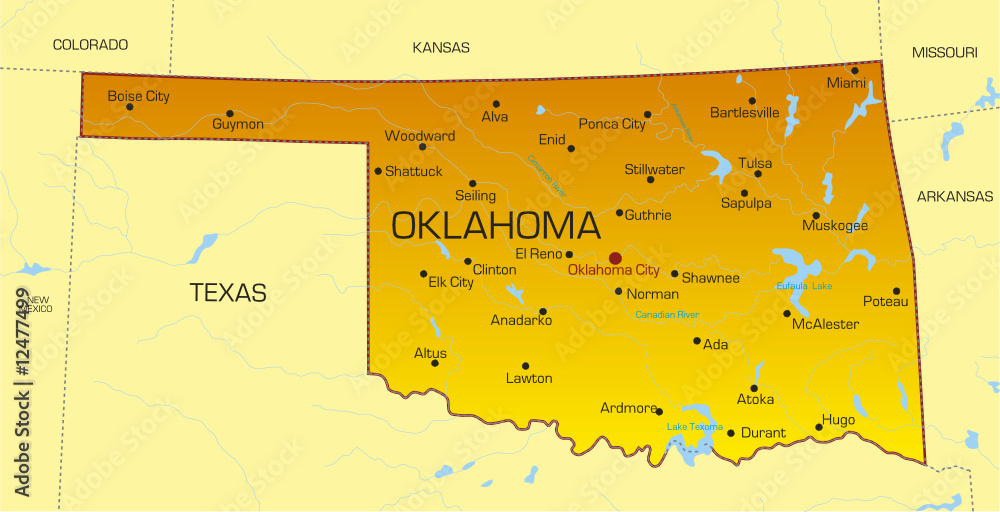 Vector color map of Oklahoma state. Usa Stock Vector | Adobe Stock
